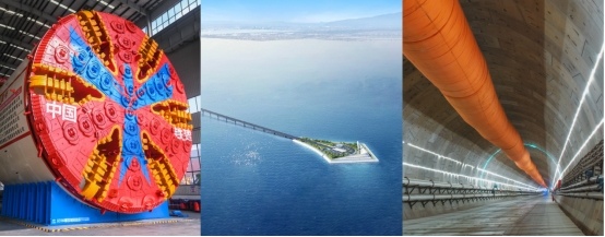 (从左到右:穗莞深城际前皇段区间工程、深中通道、深江铁路珠江口隧道)