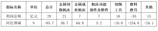 机床工具行业及主要分行业的利润总额情况,详见表2。