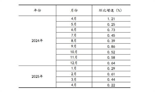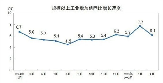 根据季节调整模型自动修正结果,对2024年4月至2025年3月份规模以上工业增加值环比增速进行修订。修订结果及2025年4月份环比数据如下: