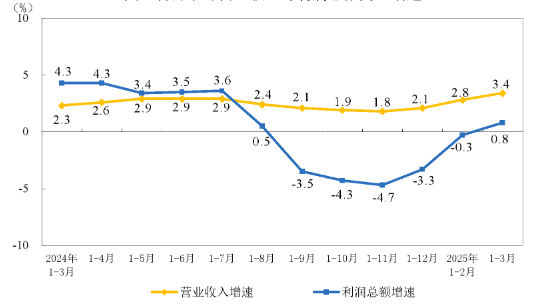 1-3月份,规模以上工业企业实现营业收入32.14万亿元,同比增长3.4%;发生营业成本27.44万亿元,增长3.6%;营业收入利润率为4.70%,同比下降0.12个百分点。