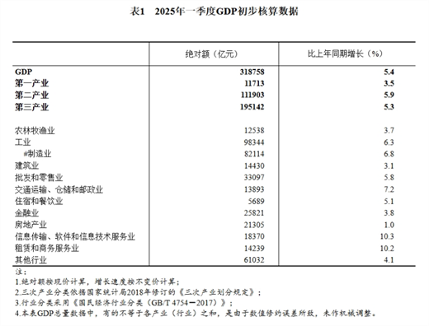 【机床商务网栏目 市场分析】根据有关基础资料和国内生产总值(GDP)核算方法,经初步核算,我国2025年一季度GDP核算结果如下。