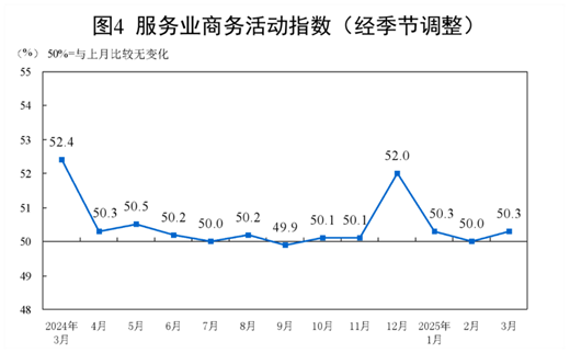 3月份,非制造业商务活动指数为50.8%,比上月上升0.4个百分点,非制造业扩张步伐有所加快。