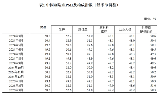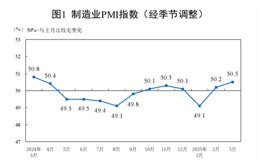 3月份,制造业采购经理指数(PMI)为50.5%,比上月上升0.3个百分点,制造业景气水平继续回升。