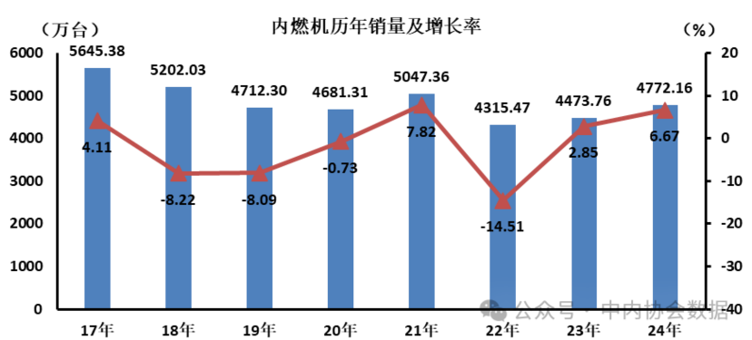 内燃机历年销量及增长率 日期: 2026-02-20 06:40 栏目:市场分析 浏览: 摘要据中国内燃机工业协会统计分析,2024年12月,内燃机行业销量469.94万台,环比增长1.50%,同比增长18.73%;2024年,内燃机行业整机年度销量4772.16万台,同比增长6.67%. 【机床商务网栏目 市场分析】据中国内燃机工业协会统计分析,2024年12月,内燃机行业销量469.94万台,环比增长1.50%,同比增长18.73%;2024年,内燃机行业整机年度销量4772.16万台,同比增长6.67%。 标签: 上一篇:2024年我国规上电子信息制造业增加值同比增长11.8% 下一篇:2024年我国软件业务收入137276亿元,同比增长10.0 相关推荐 2024年工具进出口海关数据分析 2024年各地金属切削机床产量统计 2024年,规模以上电子信息制造业实现营业收入16.19万亿元 《安徽省制造业优质企业成长计划》印发