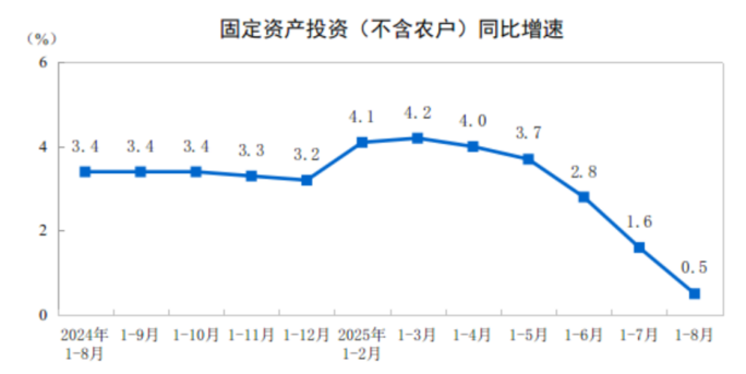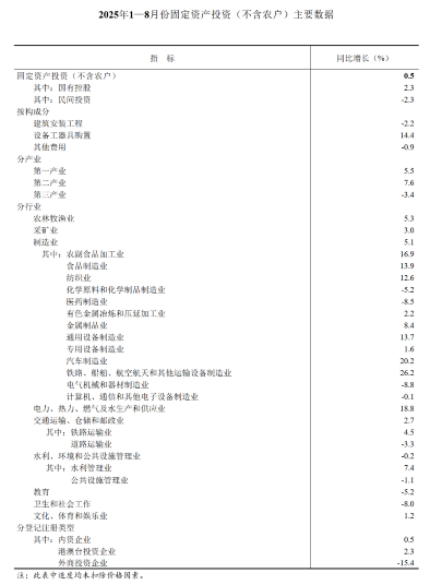 【机床商务网栏目 市场分析】2025年1—8月份,全国固定资产投资(不含农户)326111亿元,同比增长0.5%(按可比口径计算,详见附注7)。其中,民间固定资产投资同比下降2.3%。从环比看,8月份固定资产投资(不含农户)下降0.20%。