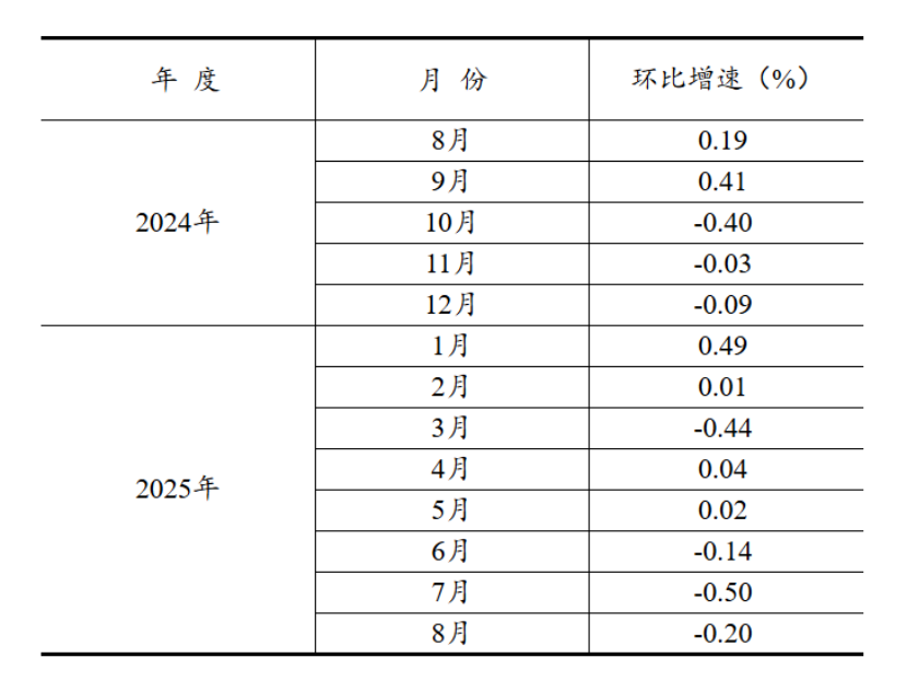 根据季节调整模型自动修正结果,对2024年8月份以来的固定资产投资(不含农户)环比增速进行修订。修订结果及2025年8月份环比数据如下: