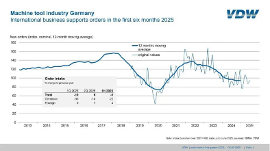 机床行业的复苏再次遭遇挫折,VDW相关负责人分析道。预计要到2026年才能恢复稳定增长。德国国内需求预计将起到提振作用,而海外业务表现可能弱于此前预期。美国的关税政策正在重创其自身经济。这种局面在短期内难以形成强劲推动力。