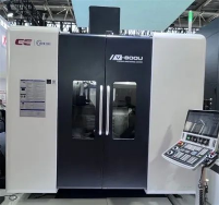 创世纪工业装备(广东)有限公司展出的V-800U立式五轴加工中心,床身结构采用高刚性动梁龙门式结构,主轴到横梁距离短,三轴独立运动,Y轴采用双丝杆双驱动结构,得到最佳的动态响应。使用德国技术加持的高精DD直驱转台,A轴双力矩电机双驱动技术,A/C轴最高转速可达50r/min,应用于航空航天、汽车、模具等领域的碳钢、不锈钢、钛合金等复杂零件加工。机床工作台尺寸φ800/700mm,机床最大工件负重为800kg,主轴锥孔为HSK-A63,主轴转速16000r/min,链式刀臂式刀库,刀库容量40把,X/Y/Z轴最大快移速度36/36/36m/min,X/Y/Z轴定位/重复定位精度为0.006/0.004mm,A/C轴定位/重复定位精度为6″/4″,搭配西门子SINUMERIK ONE系统。