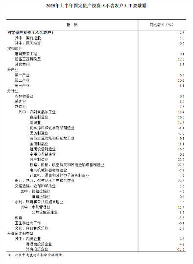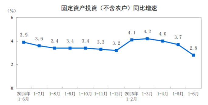 【机床商务网栏目 市场分析】2025年上半年,全国固定资产投资(不含农户)248654亿元,同比增长2.8%(按可比口径计算,详见附注7)。其中,民间固定资产投资同比下降0.6%。扣除价格因素影响,固定资产投资(不含农户)同比增长5.3%。从环比看,6月份固定资产投资(不含农户)下降0.12%。