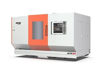 秦川机床工具集团股份公司MTK20-B车削中心,最大加工直径φ320mm、最大加工长度800mm、最大棒料直径φ80mm,主轴最高转速4000r/min;X1/X2轴行程210mm、Z1/Z2/Z3轴行程800mm、Y1/Y2轴行程±55mm,该机床采用双主轴、多刀塔布局、4轴联动、双C轴功能,配合多刀塔的伺服动力刀塔,可实现对工件的全部或大部分工序的加工,提高加工效率。