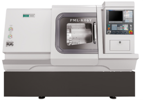 玉环市坎门机床厂K06SY2车铣复合机,最大切削直径φ280mm,最大切削长度600mm,主轴最高转速4300r/min;X1/X2轴行程190mm,Z1/Z2轴行程600mm,Y1/Y2轴行程±50mm,12工位T1/T2刀塔;床身整体450布局,双C轴控制,XZ轴采用加长滑块直线导轨,Y轴采用硬轨结构和动力刀塔一体化设计,极大提高了切削刚性和抗振能力。