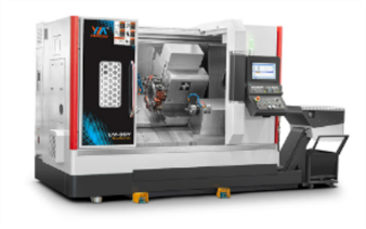 东莞市扬牧数控科技有限公司LM-08Y2双主轴双通道车铣复合中心,床身上回转直径φ500mm、拖板回转直径φ200mm,最大加工长度200mm,主轴/副主轴最高转速5000r/min,X1/X2轴行程420mm,X1/X2快移速度20m/min;Z1/Z2轴行程265/1200mm,Y1/Y2行程±35mm;对向式双主轴,左右刀塔配备双Y轴硬轨高刚性动力刀塔,大扭矩内藏式驱动电主轴转速12000 r/min。
