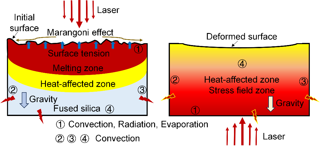 伴随着现代光学技术的发展,熔石英元件的紫外激光诱导损伤问题严重制约了高功率激光系统的发展。目前,激光抛光由于具有非接触、无加工辅料和加工灵活的技术优势,有望实现高阈值熔石英元件的加工。然而,激光抛光受到热应力的影响会产生不均匀的扫描轨迹,严重恶化面形质量,降低元件的性能和寿命。