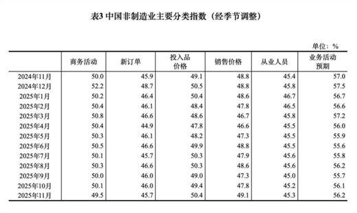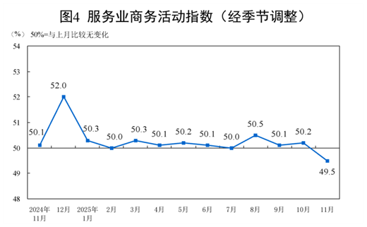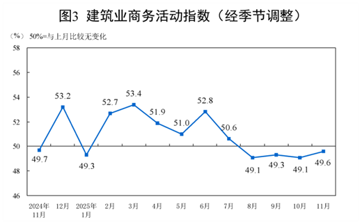 11月份,非制造业商务活动指数为49.5%,比上月下降0.6个百分点。