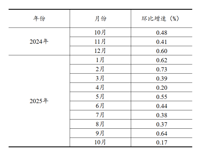 根据季节调整模型自动修正结果,对2024年10月至2025年9月份规模以上工业增加值环比增速进行修订。修订结果及2025年10月份环比数据如下: