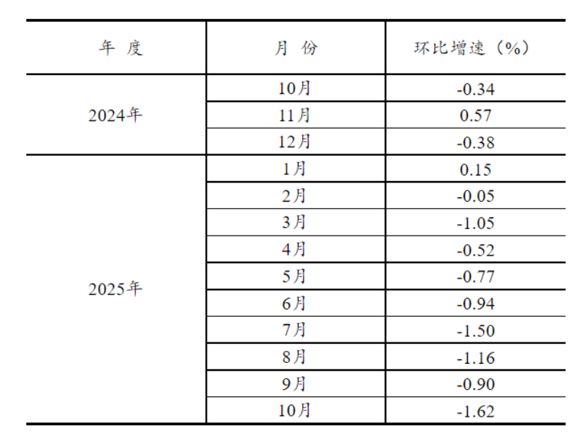 根据季节调整模型自动修正结果,对2024年10月份以来的固定资产投资(不含农户)环比增速进行修订。修订结果及2025年10月份环比数据如下: