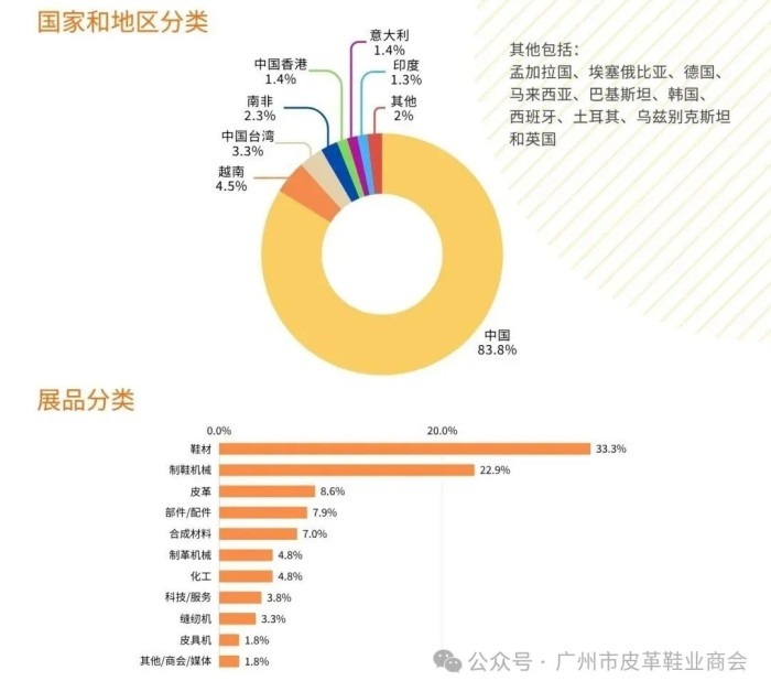 2025年5月15日至17日,「第三十三届广州国际鞋类、皮革及工业设备展览会」暨「广州国际鞋类制成品展览会」共吸引了来自17个国家和地区的726家参展商,展览面积达36,712平方米。